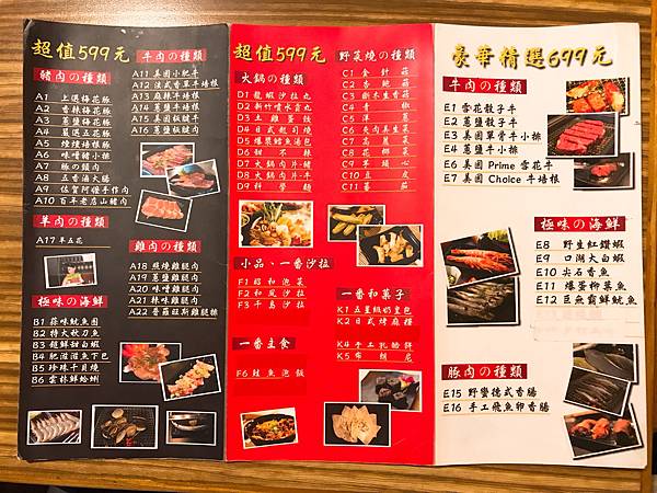 但要注意第二頁有幾項高級食材,有些是每人限點一份哦!